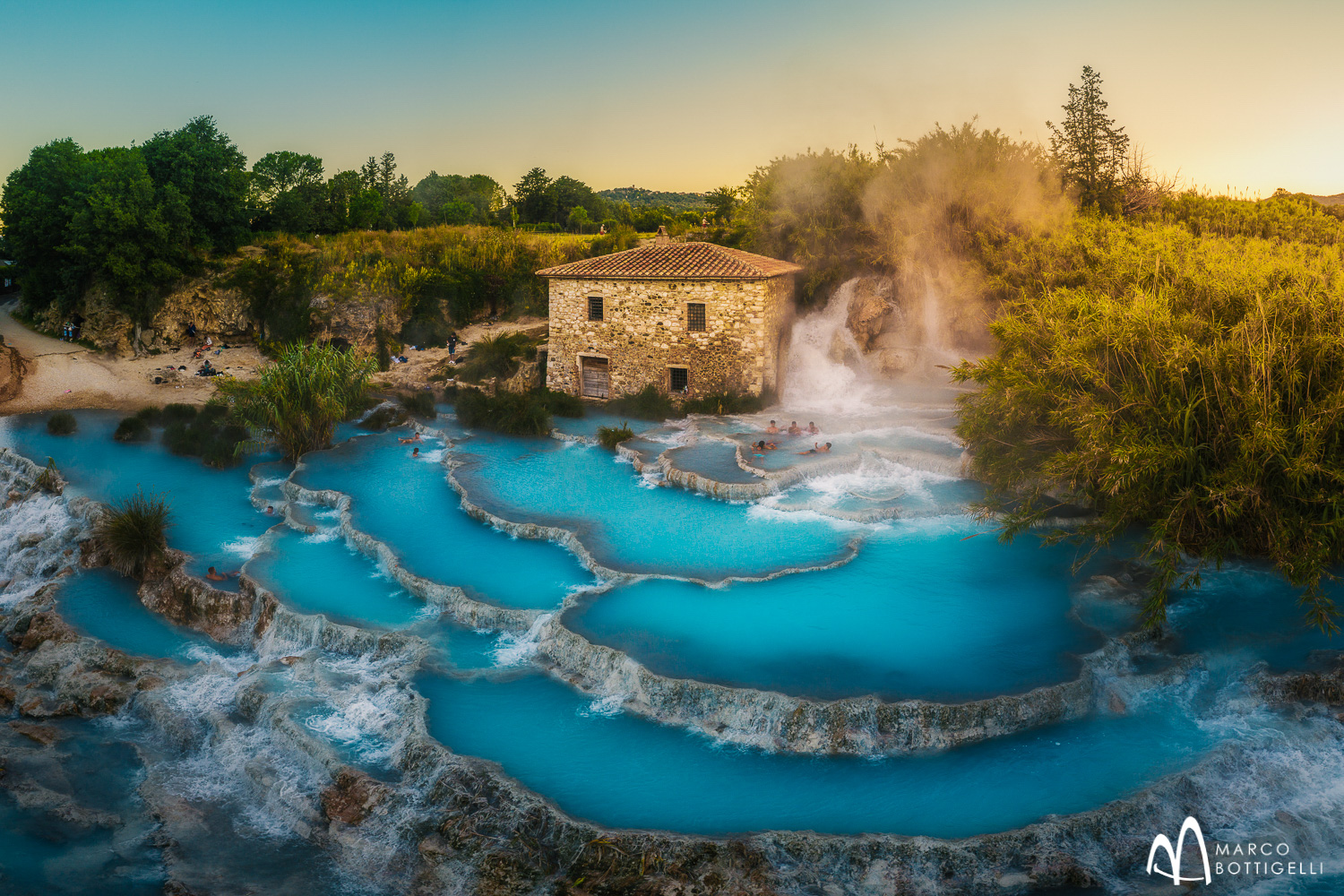 - Himmelblau schimmerndes Thermalwasser, diffuses Licht zum Sonnenaufgang und ein Heilbad in den magischen heißen Schwefelquellen von Saturnia