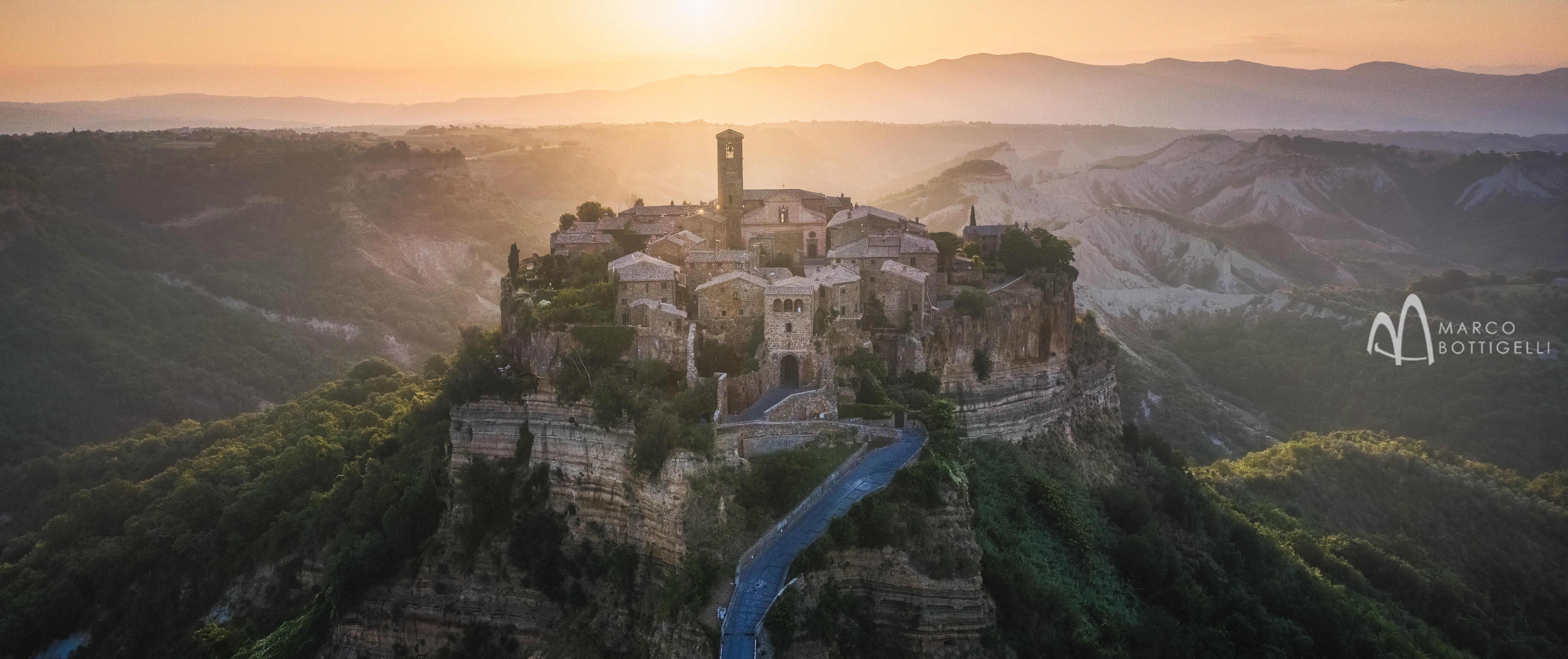 Noch ein letztes Shooting zum Sonnenaufgang, dann ist es schon an der Zeit, das Val d'Orcia zu verlassen und in Richtung Süden zu den antiken Tuffsteinstädten Pitigliano und Sorano aufzubrechen. Pitigliano präsentiert sich inmitten eines märchenhaften Panoramas - ein magischer Anblick der uns noch lange im Gedächtnis bleiben wird. In 300 Metern Höhe erhebt sich die Silhouette des Städtchens über einem steilen Tuffsteinplateau, begrenzt von üppig grünen Tälern und Flüssen. Zahllose würfelförmige Häuser schmiegen sich unterhalb einer Kathedrale dicht aneinander und wirken selbst wie aus bizarrem Fels gehauen. Die hohen Tuffsteinwände, die von Tausenden von Höhlen und Wohntürmen durchbrochen werden, prägen die mittelalterliche Stadtanlage, welche mit ihren steil abfallenden Hängen wie aus dem Boden der Maremma gewachsen zu sein scheint. Unsere Fahrt gleicht einer Zeitreise: vor uns liegt nun Sorano, eine alte Stadt, die ihre Blüte während der Etruskerzeit erlebte. Sie ist von pittoresken Häusern und Gassen in einer unvergleichlichen Atmosphäre geprägt. Auch Sorano liegt, wie das nahe Pitigliano, auf einem Tuffsteinfelsen und wird ‘Matera der Toskana’ genannt. Ein Name, der auf Höhlenwohnungen und die faszinierenden Via delle Cave, in den Fels geschlagene Hohlwege, zurückzuführen ist.