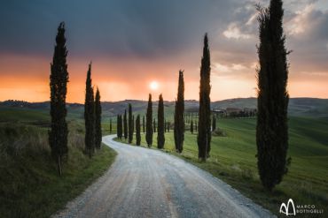Nach einer ausgiebigen Verschnaufpause bietet sich der Nachmittag für einen langsamen fotografischen Spaziergang in dem kleinen etruskischen Dorf San Quirico d'Orcia an. Der Charme von San Quirico ist so groß, dass man ihn nicht mit Worten beschreiben kann. Die Straßen der Stadt schlängeln sich zwischen romanischen Kirchen und alten Gebäuden hindurch und bewahren ein unverwechselbares mittelalterliches Herz. Neben den mittelalterlichen Überresten des Torre del Cassero, des Palazzo Chigi und den wunderschönen italienischen Gärten von Horti Leonini bietet San Quirico viele Kirchen von historischem und künstlerischem Interesse. Zum späten Abendshooting, wenn sich die Sonne malerisch über den Hügeln senkt und das Val d' Orcia in ein Farbenmeer verwandelt, lassen wir uns vom erhabenen Anblick des ikonischen Zypressenhains von Torrenieri mit seiner Vielzahl möglicher Bildkompositionen verwöhnen.