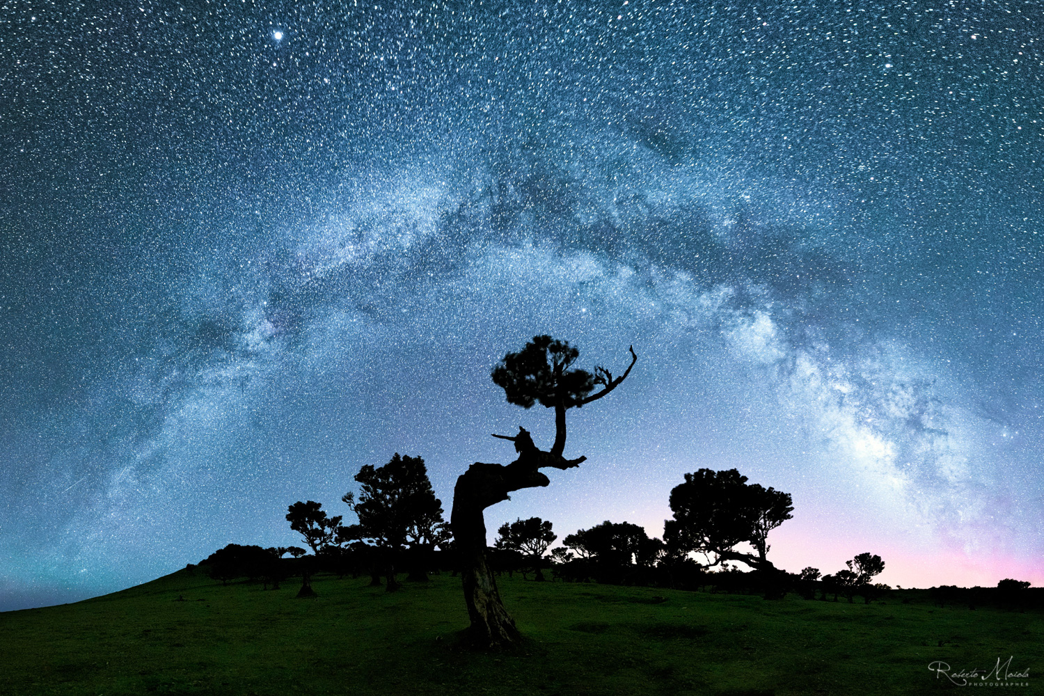 Wir fotografieren all die magischen Momente im Fanal-Wald bis zum Einbruch der Nacht. Die fehlende Lichtverschmutzung auf Madeira ermöglicht uns, den Nachthimmel in seiner vollen Pracht, als ein Band von unzähligen Sternen und leuchtenden Gaswolken, einzufangen. Sobald die Sterne erscheinen, fotografieren wir die Milchstraße, welche sich über den ikonischen Laurisilva-Wald wölbt, wobei wir die surrealen Formen der Bäume als Motiv für unsere Bilder wählen und somit atemberaubende Astrofotografie-Kompositionen schaffen. Und natürlich wird Ihnen unser Coach viele Tipps und Anleitungen für gelungene Aufnahmen des Nachthimmels geben. Erfüllt von diesem unvergesslichen Erlebnis kehren wir in unser Hotel zurück.