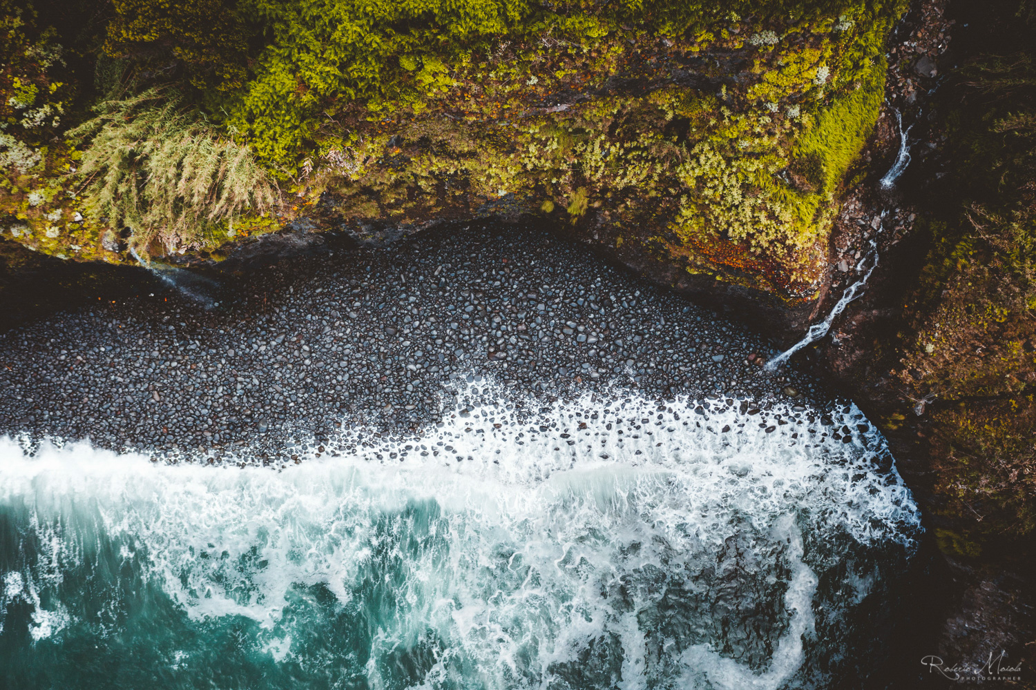 Bald setzen wir unsere Reise in Richtung Nordosten der Insel fort und steuern die faszinierenden Black Sand Beaches von Seixal an. Hier erwartet uns eine dramatische Küstenlandschaft, die mit ihrem tiefschwarzen, vulkanischen Sand beeindruckt. Die magischen Blautöne des klaren Meereswassers und die kraftvolle Brandung erzeugen einen intensiven Kontrast zum dunklen Sand, der nahezu surreal wirkt. Diese Kulisse bietet uns eine Fülle an fotografischen Möglichkeiten, von atemberaubenden Landschaftsaufnahmen bis hin zu reduzierten, abstrakten Detailstudien der dynamischen Wellenmuster, die wir in unseren Bildern festhalten möchten.