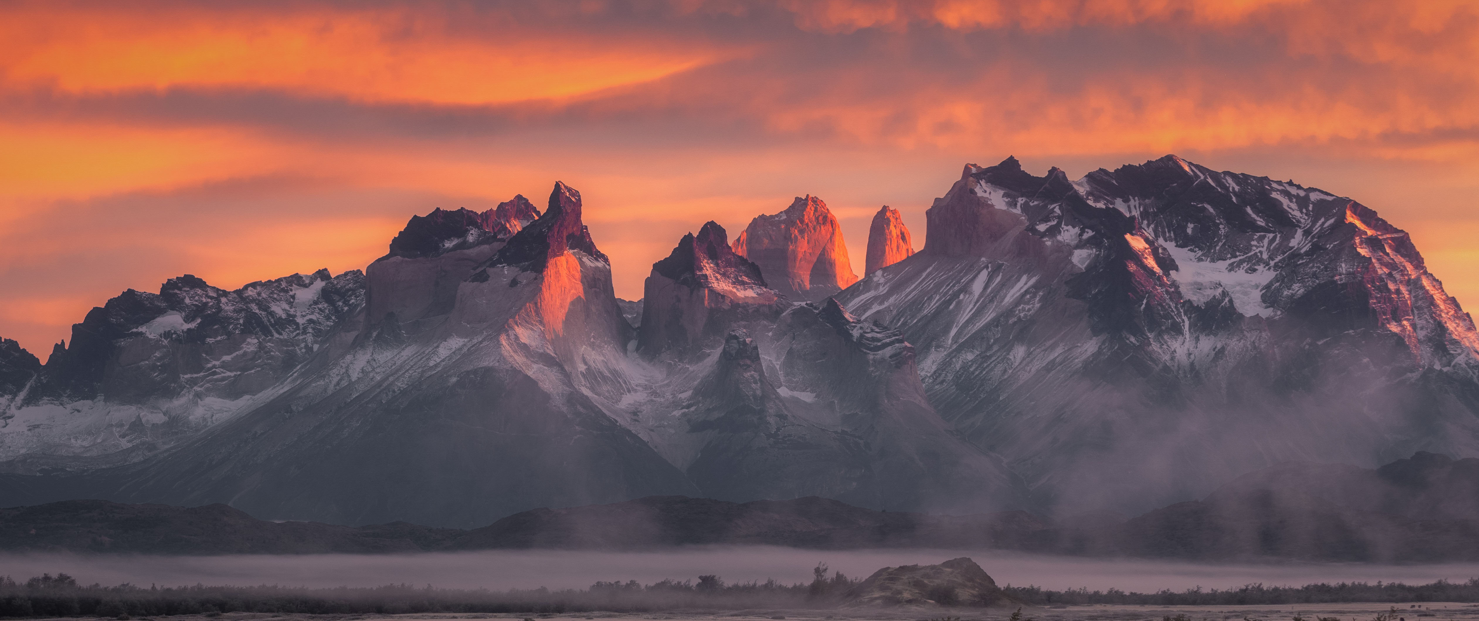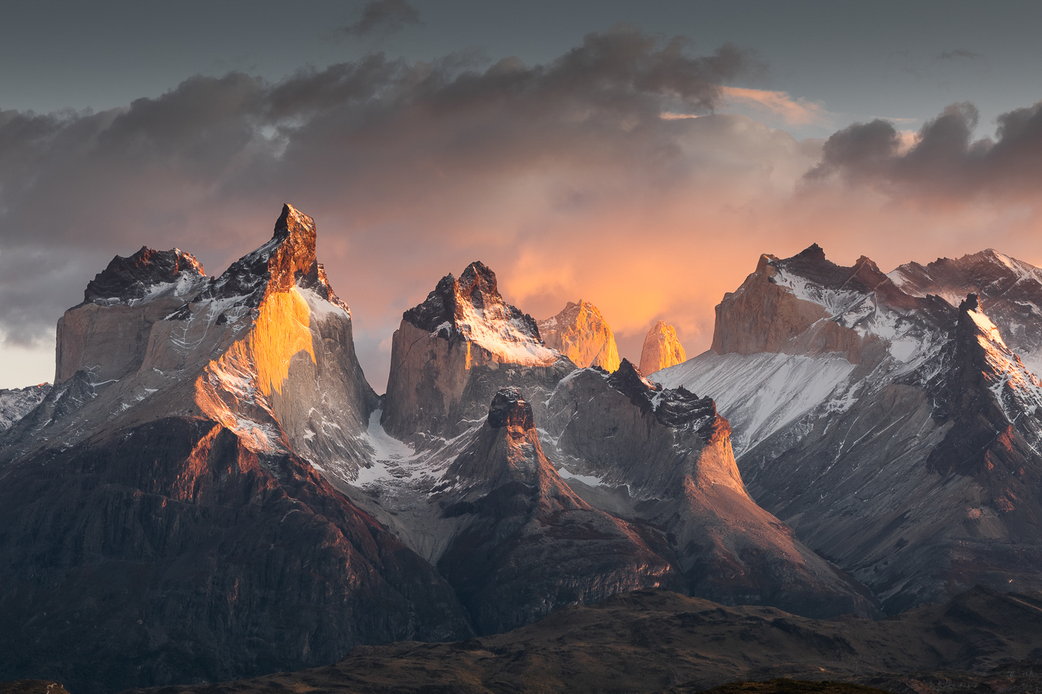 In den nächsten drei Tagen erkunden wir gemeinsam die spektakuläre Landschaft des Torres del Paine Nationalparks. Mächtige Granitfelsen, sprudelnde Wasserfälle und türkisblaue Seen schaffen ein berauschendes Szenario, das jeden Fotografentraum wahr werden lässt. Unsere Tage beginnen wir mit einem leckeren Frühstück. Am frühen Morgen verlassen wir gemeinsam das Hotel, um pünktlich zum Sonnenaufgang die nahegelegene Landschaft im schönsten Licht einfangen zu können. Die anschließenden Vormittage im Torres del Paine Nationalpark werden wir dafür nutzen, den Lake Pehoe und seine Umgebung ausgiebig zu erkunden und zu genießen. Der See ist für sein strahlendes, türkisblaues Gletscherwasser bekannt. Viele Reisende berichten, noch nie zuvor solch eine intensive Wasserfarbe gesehen zu haben. Stellen Sie sich dazu grüne Landzungen im See und die gigantischen Bergfelsen des Paine-Massivs mit seinen senkrechten Granitnadeln, vereisten Gipfeln und steil geschichteten Felsblöcken als Hintergrundmotiv vor: eine schier unendliche Fülle an Fotomotiven! Die von unserem Fotografen sorgfältig ausgewählten Spots versprechen wechselnde Perspektiven und spannende Blickwinkel auf dieses faszinierende Panorama. Anschließend kehren wir für eine Pause und zum Mittagessen ins Hotel zurück.