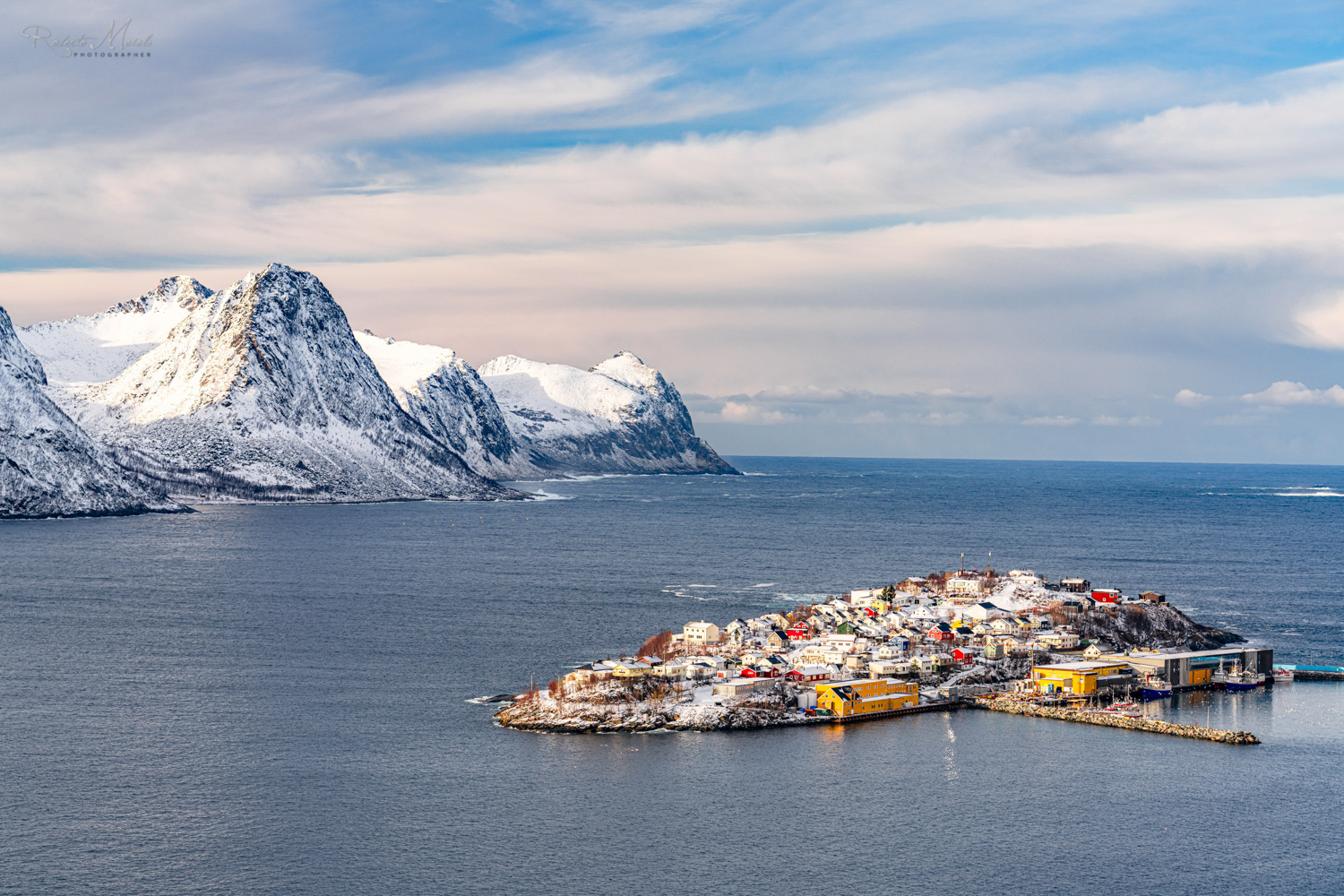 Unsere fotografische Entdeckungsreise beginnt schon in den frühen Morgenstunden – bereits vor Sonnenaufgang machen wir uns auf den Weg in Richtung Norden zum Ørnfløya Hill (154 m. ü. M.), einem kleinen Hügel neben dem Fischerdorf Brensholmen auf der Insel Kvaløya. Während einer leichten Fotowanderung bewundern wir die verträumte Schönheit der umliegenden Landschaft, mit ihren typischen Bogenbrücken und den weißen Stränden, welche von azurblauem, glasklaren Meer und einer Reihe kleiner Inseln, Riffe und Fjorde umringt werden. Oben angekommen werden wir mit einem wundervollen Blick auf die Fischerdörfer Sommarøya, Brensholmen und Hillesøya im Nordwesten sowie auf die Gipfel von Senja und Hekkingen im Südwesten belohnt – eine Mischung aus ursprünglicher Fischeridylle und nahezu unberührten Landschaften.