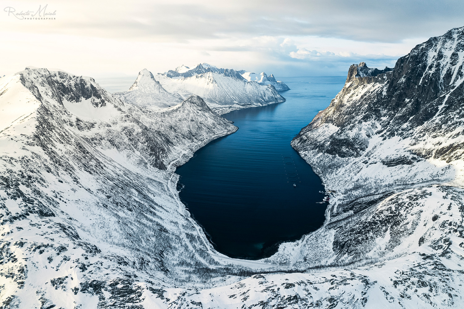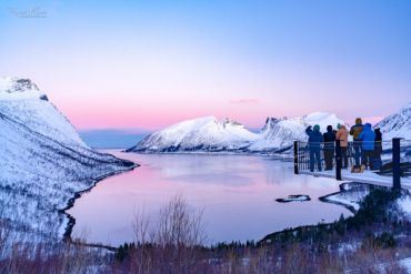 Das morgendliche sanfte Licht wollen wir uns auch heute nicht entgehen lassen, daher stehen wir schon sehr früh auf, um den Sonnenaufgang nicht zu verpassen. Wir genießen die erstaunliche Schönheit des Nordlichts über den atemberaubenden Küsten und Berghängen von Sommarøy, die wir mit unserer Kamera festhalten wollen, bevor wir uns zur Weiterfahrt nach Senja rüsten. Senja - Norwegens zweitgrößte Insel - 350 km nördlich des Polarkreises - ist ein landschaftliches Juwel zwischen Tromsø im Norden und den Lofoten im Süden. Geformt durch die raue, unbändige Natur des Nordens, steigt Senja wie ein gewaltiges Tor zur Arktis aus dem Polarmeer auf. Besonders am Anfang des Jahres verwandeln sich sich die dramatischen Landstriche in ein verträumtes Winterpanorama, das mit seinen verschneiten Gipfeln, tiefblauen Fjorden, türkis leuchtenden Untiefen und gefrorenen Seen lockt. Von Gezeiten beherrschte Küstenabschnitte formen hier steile Berghänge, die oft aus hunderten Metern Höhe in den Ozean fallen. Die dramatische Fjordlandschaft der Nordwestküsten wechselt sich mit gelegentlichen Schärenküsten, sanften Hügellandschaften und einsamen Stränden ab – hier liegen die Kontraste so nah beieinander, dass sie ein grandioses Bild hinterlassen, welches einer Sinfonie aus Idylle und Dramatik gleichkommt. Eine Traumdestination für Fotografen!