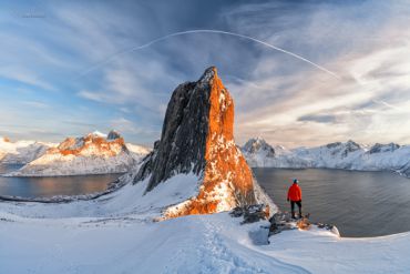 Diejenigen unter uns, welche etwas abenteuerlustiger sind, haben am Spätnachmittag die Möglichkeit, eine physisch anspruchsvollere Winter-Foto-Wanderung vom Dorf Fjordgard auf den Bergpaß zwischen Hesten und Segla zu unternehmen. Der Panoramablick vom Bergpaß ist spektakulär, allerdings ist hierfür ein relativ hohes Maß an Fitness erforderlich, da die einfache Strecke ca. 1,7 km lang ist und immerhin 340 Höhenmeter zu überwinden sind.